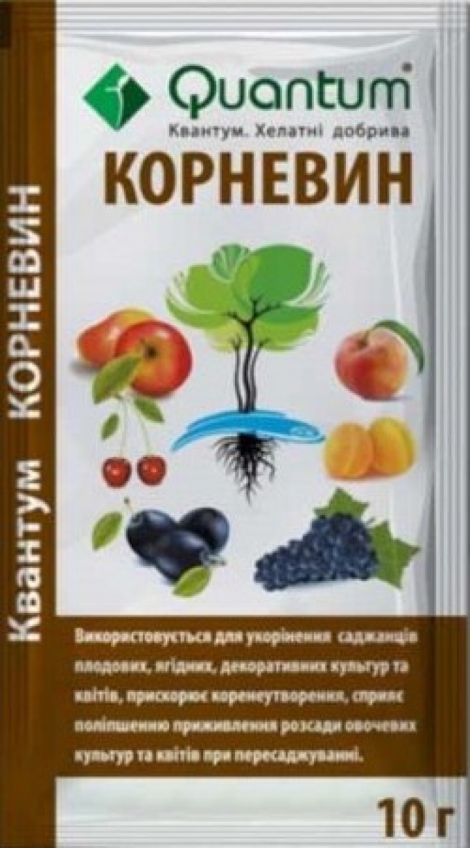 Корневин використовується для вкорінення саджанців плодових, ягідних, декоративних та квіткових культур, прискорення зростання коренів при живцюванні, поліпшення приживлюваності розсади овочевих та квіткових культур при їх пересадці.